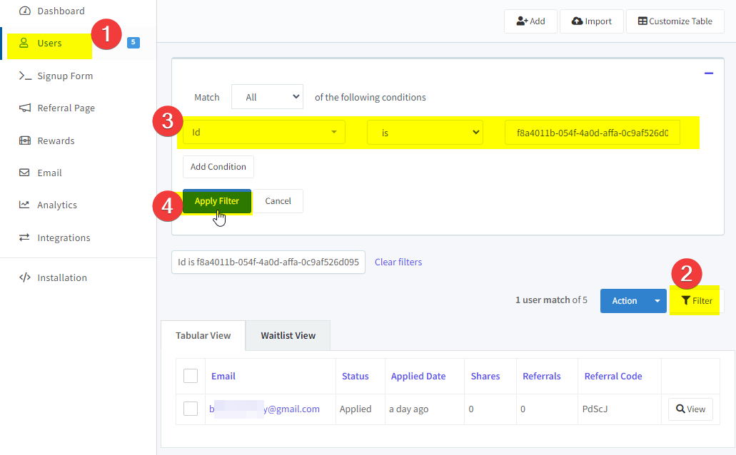 Similar to how you can search/filter users by Id, you can also now do the same by their Referral Code.